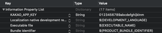 Type은 String인 Value는 네이티브 앱 키 값으로 등록을 해주세요.