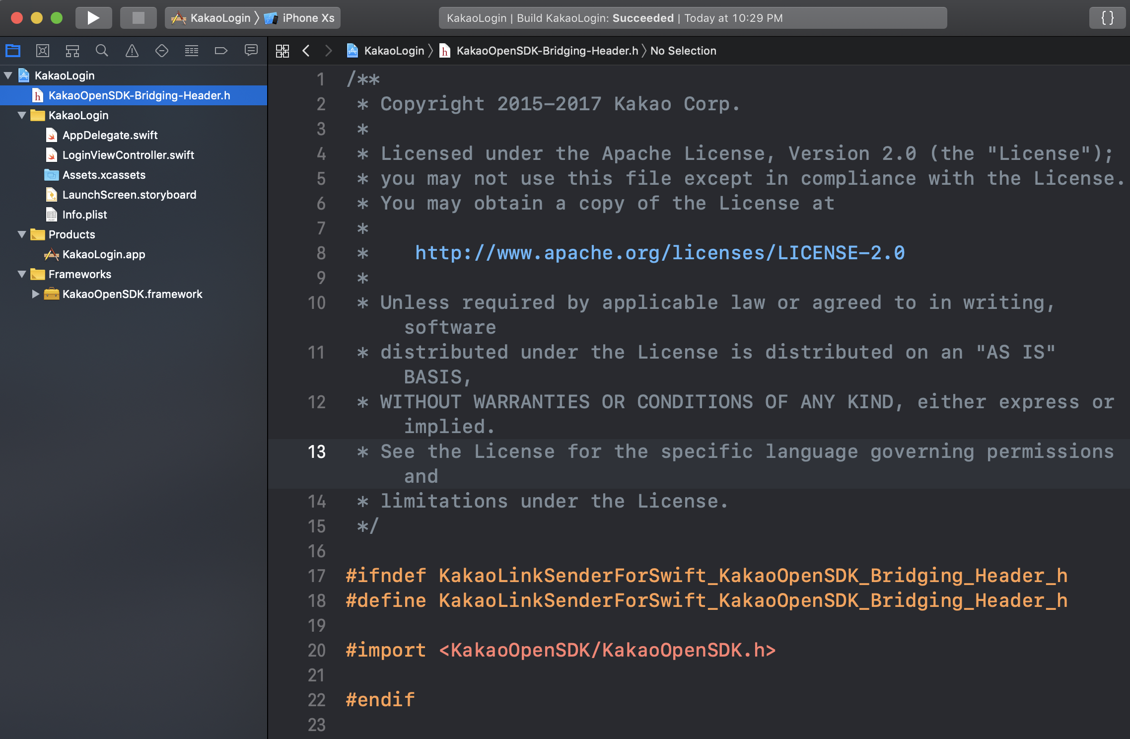 "KakaoOpenSDK-Bridging-Header.h"를 입력해주세요.