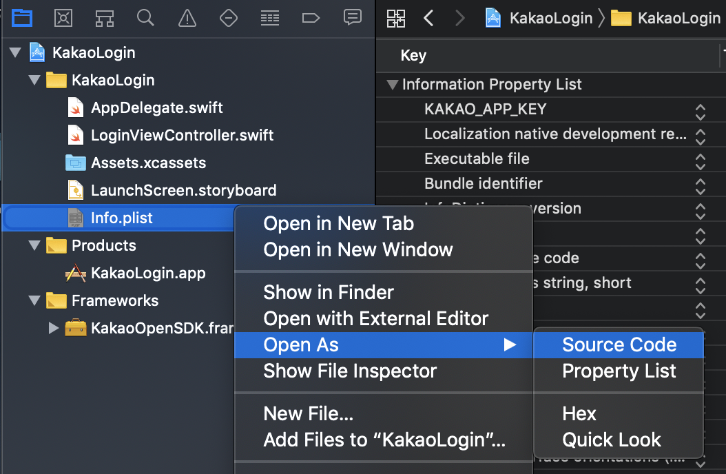 먼저, URL Types 항목을 추가해야 된다고 하네요.