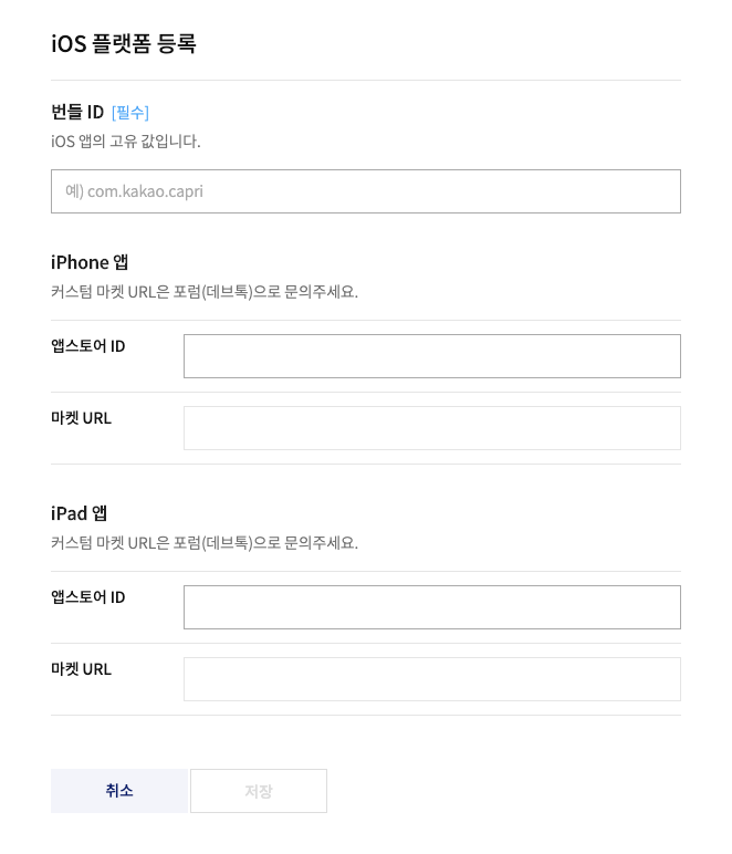 "iOS 플랫폼 등록" 버튼을 눌러주세요.