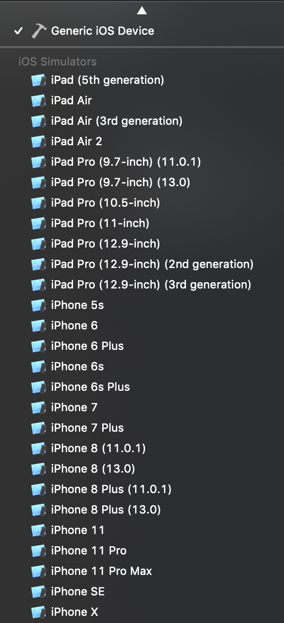 Xcode는 더 이상 기본적으로 모든 iOS 시뮬레이터를