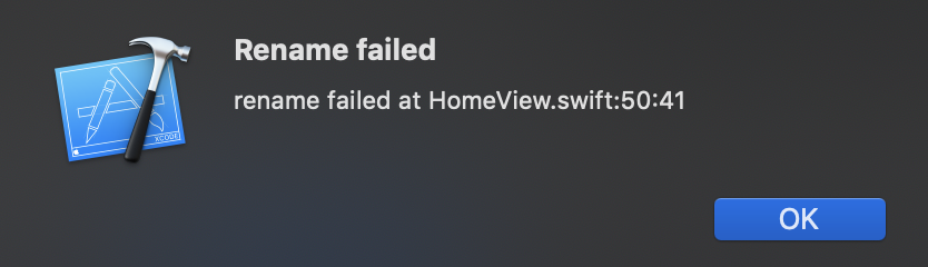 "rename failed at HomeView.swift:50:41"