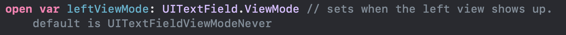 그리고 textField의 leftViewMode를 always로 해줄게요.