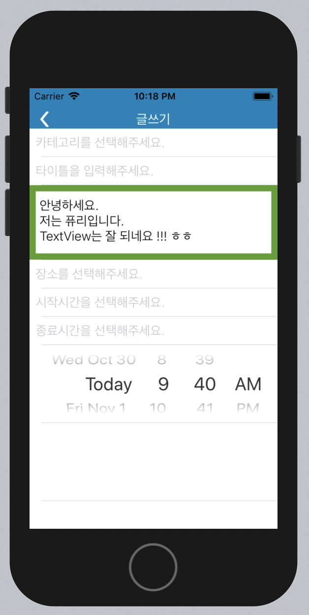 UITextView에는 placeholder 기능이 없습니다..ㅠㅠ