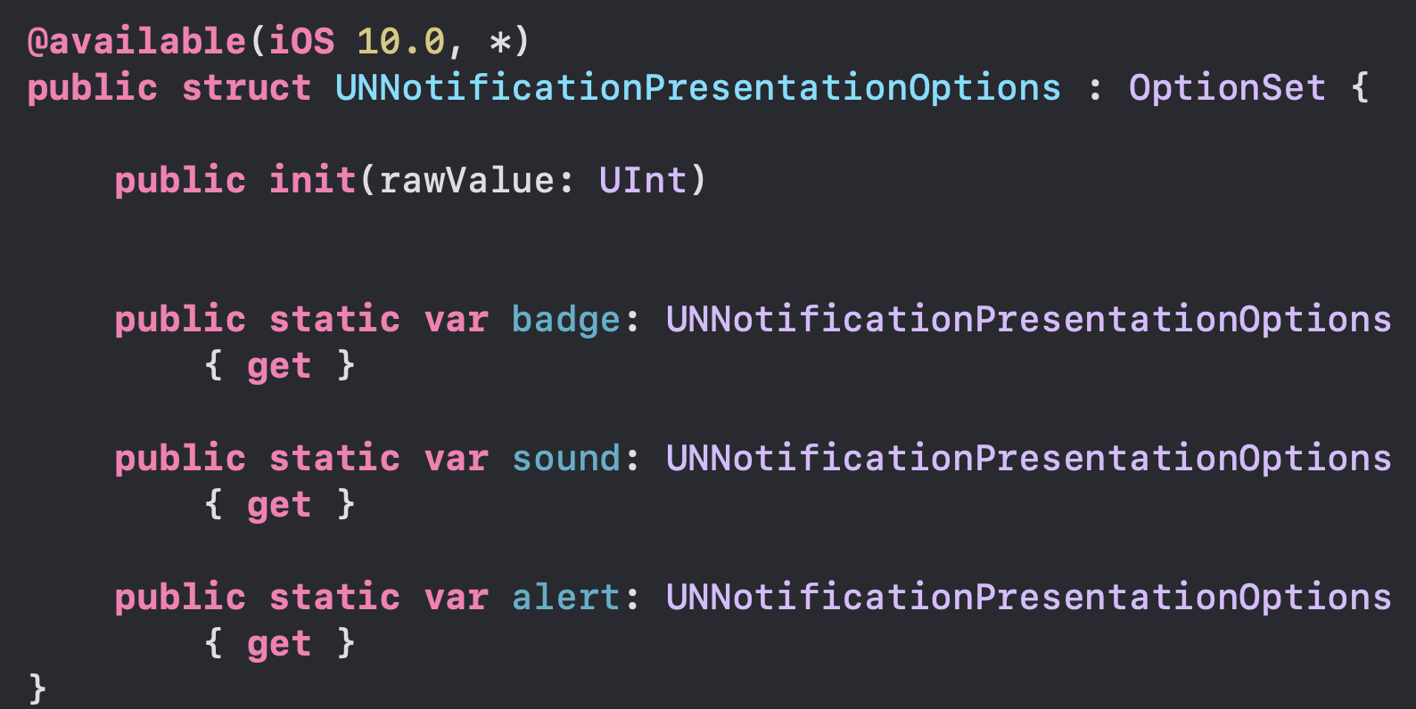 UNNotificationPresentationOptions 타입을 반환하고 있네요.