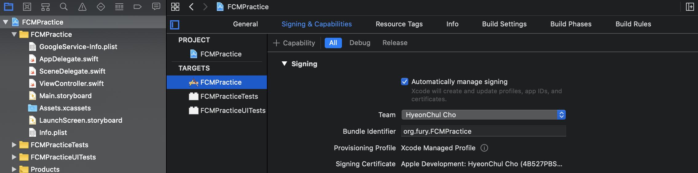 FCM을 사용하기 위해서는 애플 개발자 계정이 필요합니다.