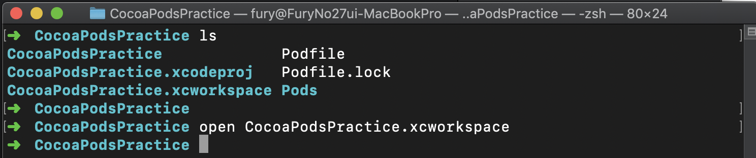 위의 명령어만 작성하셨다면 CocoaPods 설치는 끝입니다.