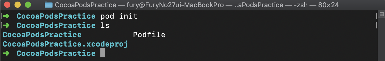 해당 디렉터리로 이동하셨다면 "pod init" 명령어를 입력해주세요.